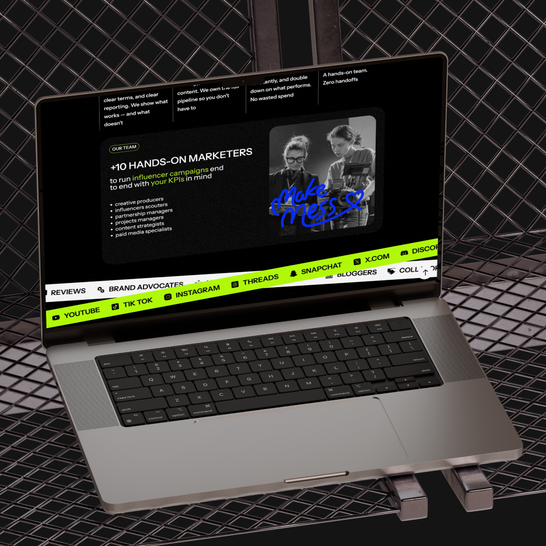MessMedia is a bold, Gen Z-driven agency with a chaotic, youthful energy. However, their previous website felt too corporate and stiff. They approached me to build a custom Webflow site that captures their unique vibe while still driving real business results